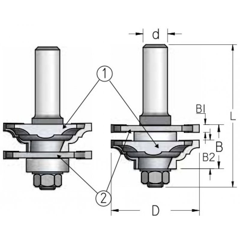Фрезы профиль-контрпрофиль. Состоят из двух ведущих подшипников и двух или трех фрез